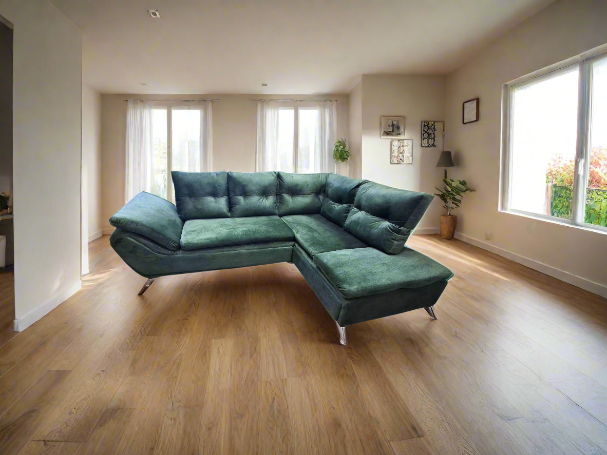 Convierte tu sala en el lugar más cool con el sofá en L MILAN. Su tela antifluido en un vibrante color esmeralda asegura que los accidentes no arruinen la fiesta, mientras que su diseño cómodo te invita a relajarte o celebrar con estilo. Perfecto para esos momentos de descanso con un toque de personalidad y frescura. ¡Es hora de darle vida y color a tu espacio con MILAN!